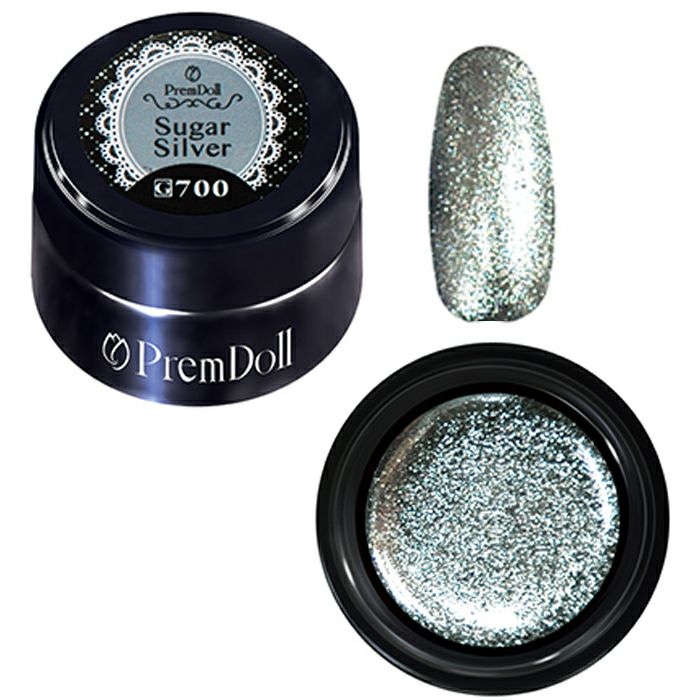 塗り感や発色に優れ、さまざまな素材を使った個性豊かなスペシャルカラー。こちらはシュガーシルバーです。一筆でスーッとラメラインが完成する高濃度ジェルで、多彩なラメカラーや季節限定のトレンドカラーなどを展開しています。