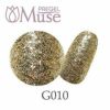 縮まず高発色!操作性にも優れたプリジェルミューズシリーズの、こちらはゴールドダストです。プリジェルミューズは、縮まずノンストレスなレベリングで薄塗りも厚塗りも完全硬化!もちろん発色も良く、プリジェルの更に先を行く全く新しいカラージェルラインです。プリジェルカラーEXと1:1でミキシングも可能で、相乗効果によりお好みのテクスチャーにもでき操作性がさらにパワーアップ!初心者の方からプロの方まで幅広く扱いやすいテクスチャーで未硬化ジェルも少なく、アートやデザインもしやすいです。法定色素のみを使用した珠玉の化粧品カラーのため、ジェルネイル検定にもご使用頂けます。