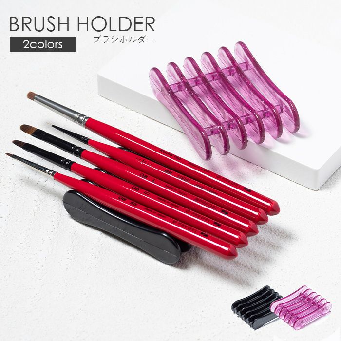 プリアンファからブラシホルダーが新発売!カラーはブラックとクリアピンク(ラメ入り)の2色です。ブラシを5本置くことができ、安定感抜群のブラシホルダーは検定やサロンワークに大活躍間違いなしです♪サイズ:7.7㎝×5.7㎝材質:ABS