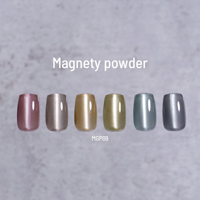 ミキシングジェルと混ぜて専用のマグネットを使用すると、奥行きのある模様やラインが浮かび上がる。混ぜるジェルによって輝きが変わり、ミラーパウダーとしても使える不思議なパウダー。